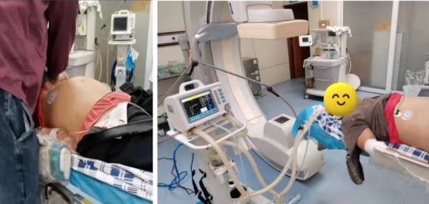 阮伯在返院途中病情進(jìn)行性加重,并出現(xiàn)了心源性休克,病情危急,介入室護(hù)士、技師、麻醉科醫(yī)生及心內(nèi)科一區(qū)介入團(tuán)隊(duì)所有醫(yī)生在16:15分全部到位并做好搶救及手術(shù)準(zhǔn)備。