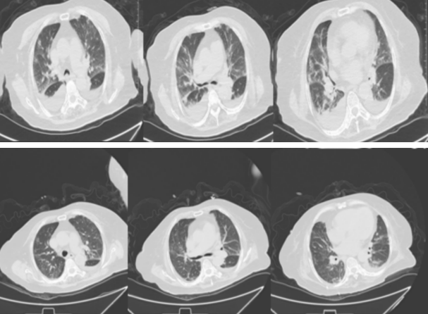 在時(shí)任感染二區(qū)科主任的梁志朋副主任醫(yī)師的帶領(lǐng)下,立即予無(wú)創(chuàng)呼吸機(jī)輔助呼吸治療,同時(shí)給予抗感染、祛痰、平喘、抗心衰、護(hù)腎、監(jiān)測(cè)生命體征、控制血糖、血壓等處理,在感染二區(qū)住院時(shí)吳奶奶肺炎、呼吸衰竭明顯癥狀改善、病灶吸收。