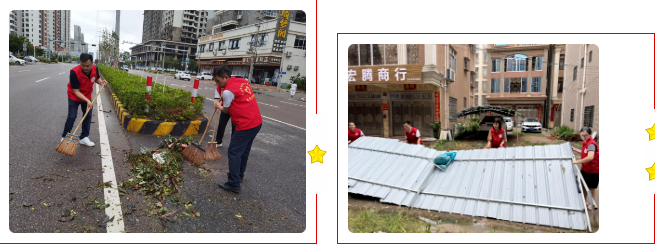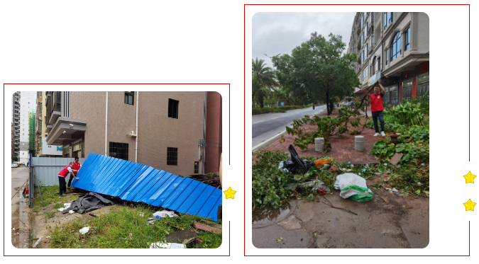 在海濱社區(qū),面對臺(tái)風(fēng)摧殘過后的滿地狼藉,醫(yī)院黨員志愿者發(fā)揚(yáng)“連續(xù)作戰(zhàn),不怕臟累”的沖鋒精神,擼起袖子,拿起掃帚,全力開展救災(zāi)行動(dòng)。大家一起動(dòng)手清理堆積的樹枝樹葉,不放過一點(diǎn)雜草、淤泥、垃圾,齊心協(xié)力搬走被吹倒在地的指示牌、鐵硼、樹木, 到處都是他們忙碌的身影,為的是以最快的速度做好路面的清障工作,恢復(fù)道路的順暢,全力保障人民群眾生命財(cái)產(chǎn)安全。