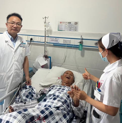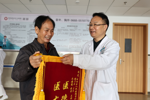 普外科一區(qū)的走廊里,電白人陳先生再次對喬教授豎起了大拇指,夸贊他技術(shù)高超,是喬教授給了他第二次生命……早在2014年大年三十,身患膽管癌的劉先生舟車勞頓趕到廣州醫(yī)科大學(xué)第三附屬醫(yī)院找到喬教授,為其做了膽管癌的胰十二指腸根治切除術(shù),9年過去,如今陳先生身體依然健康,得知喬安意教授在我院駐點幫扶,經(jīng)?;貋砥胀饪埔粎^(qū)復(fù)查身體。