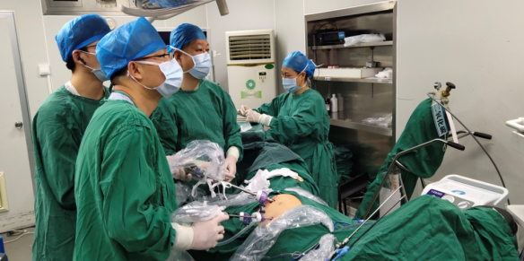 在帶領(lǐng)我院普外科獨立開展腹腔鏡胰腺、肝臟、脾臟手術(shù)時,其中不乏粘連嚴(yán)重、充血水腫的急性病例。喬安意教授注重實踐中教學(xué),通過現(xiàn)場教學(xué)方式將手術(shù)思路、處理原則、縫合技巧、如何避免損傷等個人經(jīng)驗,毫不保留地逐一介紹并手把手指導(dǎo)。