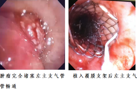第二步:呼吸與危重癥醫(yī)學(xué)科行電子支氣管鏡下激光消融術(shù)+左主支氣管支架植入術(shù)