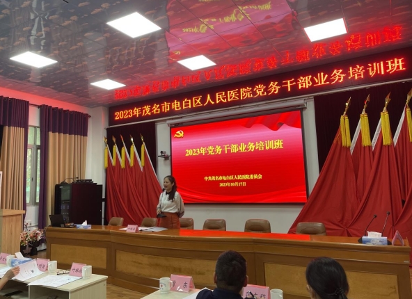 時期黨建工作新任務、新要求的履職能力,切實把我院黨建工作推上一個新臺階。10月17日下午,我院舉辦了2023年黨務干部業(yè)務培訓班。會議由醫(yī)院黨委委員楊景南主持,區(qū)委組織部區(qū)直機關黨建工作辦公室主任葉琳林同志和區(qū)委組織部區(qū)直機關工作綜合股股長汪桂娟同志作了授課,醫(yī)院黨委書記冼明健作了講話。醫(yī)院黨委領導班子成員,各黨支部書記、副書記、支部委員,黨委辦公室全體人員參加會議。