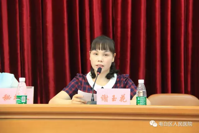 謝玉花,2003年7月畢業(yè)于茂名衛(wèi)校,畢業(yè)后即在電白縣人民醫(yī)院工作,在工作上吃苦耐勞,在學習上嚴格要求自己,2013年取得廣東醫(yī)學院護理專業(yè)本科學位,善于鉆研相關理論知識,總結工作中的經驗教訓,尤其對內科病人的護理及危重病人的搶救有豐富的臨床經驗。2012年11月至2013年2月在廣東醫(yī)學院附屬醫(yī)院進修ICU。2004年至2012年每年都被評為“院優(yōu)秀護士”,2006年被評為“院八佳護士”,2007年被評為“縣優(yōu)秀護士”、“茂名市優(yōu)秀護士”,2011年被評為“院優(yōu)秀女職工”,2012年被評為“茂名市優(yōu)秀護士”。