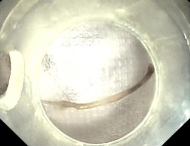 在多學(xué)科專家的共同努力下,醫(yī)生們與患者及家屬充分溝通,詳細(xì)交代了麻醉及內(nèi)鏡治療的風(fēng)險(xiǎn)與利弊。在取得患者及家屬的同意后,梁小波主任帶領(lǐng)團(tuán)隊(duì)再次為患者進(jìn)行無(wú)痛胃鏡檢查及內(nèi)鏡下治療。緊張的操作過(guò)程中,內(nèi)鏡中心李學(xué)志醫(yī)生憑借精湛的技術(shù),小心翼翼地循腔進(jìn)鏡到達(dá)十二指腸,那根隱藏在患者體內(nèi)的“罪魁禍?zhǔn)住苯K于被成功取出——竟是一根長(zhǎng)達(dá)2.5cm的魚(yú)刺!隨后,醫(yī)生們又順利完成了十二指腸球部創(chuàng)面的止血工作,經(jīng)檢查創(chuàng)面無(wú)滲血,手術(shù)取得了圓滿成功。