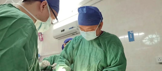 ??上圖:省醫(yī)泌尿外科范鈞泓博士(右一)、省醫(yī)粵西醫(yī)院葉劍輝副主任醫(yī)師(左一) 為患者實施手術