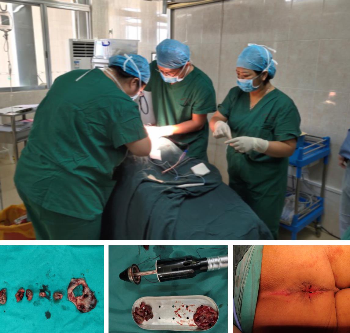 經(jīng)過(guò)充分的術(shù)前準(zhǔn)備后,蘇丹教授使用新型手術(shù)體位,減少病人痛苦,擴(kuò)大術(shù)野,簡(jiǎn)化手術(shù)難度,行混合痔切除(PPH術(shù)+外痔剝除術(shù))。術(shù)后病人恢復(fù)良好,3天順利出院。