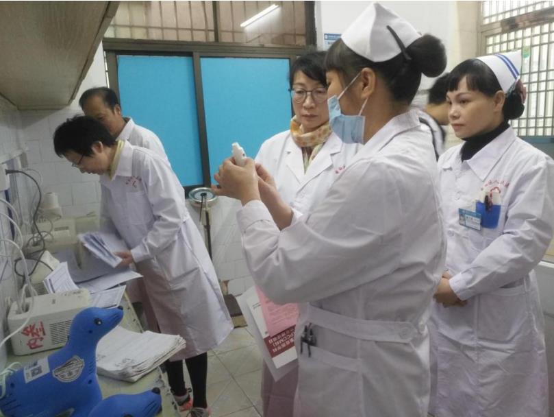 專家對(duì)霧化吸入等??撇僮飨蜇?zé)任護(hù)士進(jìn)行現(xiàn)場(chǎng)考核