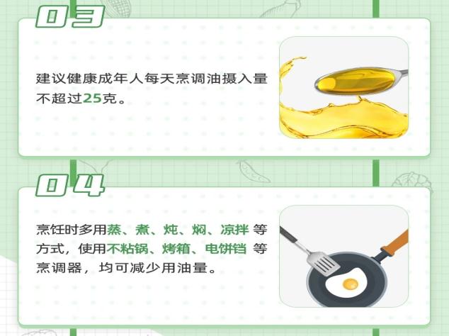 9月前兩周宣傳主題為“健康要加油,飲食要減油”,廣泛倡導飲食減油理念,傳播減油核心信息。為此,國家衛(wèi)健委發(fā)布了十條減油宣傳核心信息: