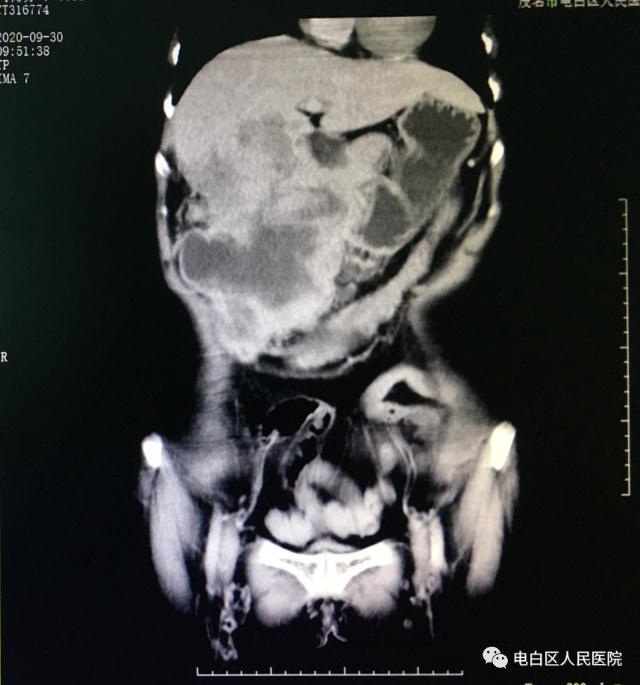 9月30日,同村村民因在我院普外肝膽??剖中g(shù)治療,效果良好,向其推薦來我科手術(shù),患者遂抱著最后一線希望,找到喬安意教授、張子恒主任就診。
