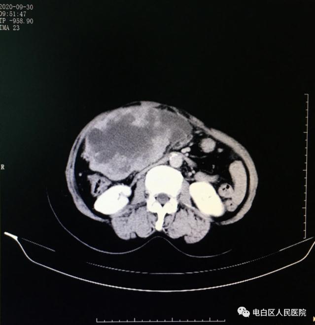 女性患者,63歲,腹部巨大占位?;颊叽饲?個(gè)月,輾轉(zhuǎn)多次在湛江某醫(yī)院、高州市某醫(yī)院就診,均因腫瘤巨大,手術(shù)風(fēng)險(xiǎn)太大,兩地醫(yī)院均拒絕為其手術(shù),勸其回家?;颊吲c家屬無奈,放棄治療回家。