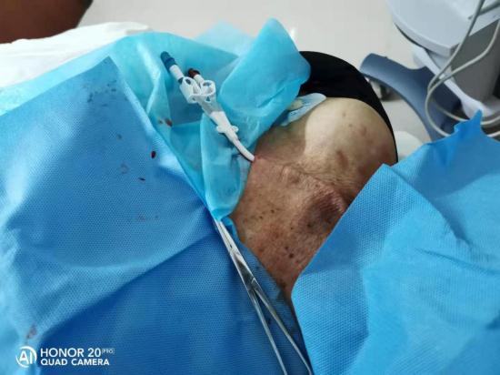 目前內(nèi)五科已經(jīng)能夠獨立開展中心靜脈長期導(dǎo)管置管術(shù),該手術(shù)在床邊彩超定位下操作,定位準(zhǔn)確,出血風(fēng)險小,所使用的長期導(dǎo)管通過頸內(nèi)靜脈置管,其使用時間長,感染、血栓并發(fā)癥少,不易脫落,護(hù)理簡單。
