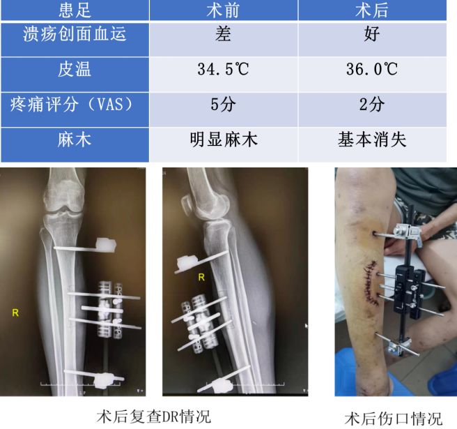 近日,我院外五科(骨外科-2區(qū))程良才主任、張文聰副主任和羅建強(qiáng)副主任醫(yī)師成功為一例糖尿病足患者進(jìn)行脛骨橫向骨搬運(yùn)術(shù),手術(shù)效果非常好,術(shù)后患足血運(yùn)明顯改善。此例手術(shù)成功有效改善了患肢的血運(yùn),緩解了患者足趾疼痛和麻木,同時(shí)有效地控制了感染,阻斷了患足壞疽的進(jìn)一步加重,并達(dá)到了保肢的目的。