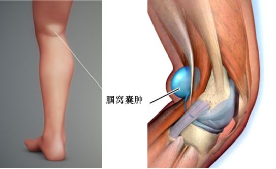 腘窩囊腫形成機(jī)制:在囊腫及關(guān)節(jié)腔通道口存在一層皺襞或束帶,由于關(guān)節(jié)內(nèi)疾患而增多的關(guān)節(jié)積液可通過通道進(jìn)入滑囊,但不能從滑囊進(jìn)入關(guān)節(jié)腔,形成單向流通的“閥門機(jī)制”,導(dǎo)致了囊腫的形成。