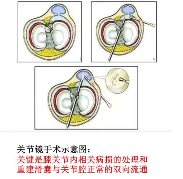 目前腘窩囊腫手術(shù)方式主要有:開放性后側(cè)入路及關(guān)節(jié)鏡下腘窩囊腫切除兩種。傳統(tǒng)后側(cè)入路行腘窩囊腫切除,不僅手術(shù)切口較大,術(shù)后形成疤痕影響美觀及功能恢復(fù),無法處理膝關(guān)節(jié)內(nèi)的病變,復(fù)發(fā)率高。關(guān)節(jié)鏡不僅可以處理關(guān)節(jié)腔的疾患,還可以進(jìn)入后內(nèi)側(cè)間室,在直視下將關(guān)節(jié)囊通道口的“瓣膜”清除,擴(kuò)大通道,使囊腫與關(guān)節(jié)腔的通道形成雙向流通,同時進(jìn)行囊腫壁全部切除。關(guān)節(jié)鏡下治療腘窩囊腫是一種針對腘窩囊腫發(fā)病機(jī)制有效手術(shù)方法,具有創(chuàng)傷小、出血少、恢復(fù)快、復(fù)發(fā)率低等優(yōu)點(diǎn)。