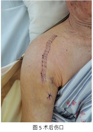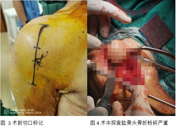 病情穩(wěn)定后,經(jīng)程良才主任、張文聰副主任和王志旭主治醫(yī)師會(huì)診,認(rèn)為該患者合并有嚴(yán)重的骨質(zhì)疏松癥,且肱骨近端骨折粉碎嚴(yán)重,如果行內(nèi)固定可能固定不夠牢固,容易出現(xiàn)內(nèi)固定失敗、骨不連和肱骨頭壞死可能性大,故擬行人工肩關(guān)節(jié)置換術(shù)。并請(qǐng)麻醉科李秀蒲科主任、邵曉康醫(yī)師會(huì)診后,于2021年4月19日送手術(shù)室在全身麻醉下行右肩關(guān)節(jié)置換術(shù),術(shù)中麻醉平穩(wěn),手術(shù)順利,術(shù)后安返病房。術(shù)后予常規(guī)抗感染、消腫、改善微循環(huán)、指導(dǎo)功能鍛煉,目前患者尚在順利康復(fù)中。