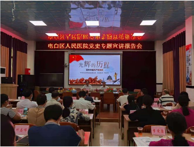 為全面準(zhǔn)確系統(tǒng)宣講好黨史學(xué)習(xí)教育精神,以高標(biāo)準(zhǔn)高質(zhì)量開展黨史學(xué)習(xí)教育,根據(jù)省委、市委黨史學(xué)習(xí)教育領(lǐng)導(dǎo)小組《關(guān)于做好黨史專題宣講工作的通知》和區(qū)委黨史學(xué)習(xí)教育領(lǐng)導(dǎo)小組《關(guān)于開展黨史學(xué)習(xí)教育的實(shí)施方案》要求,4月28日下午3時(shí),我院在小會議室召開了電白區(qū)人民醫(yī)院黨史專題宣講報(bào)告會,特邀電白區(qū)委黨校陳淙毅老師作宣教報(bào)告。會議由醫(yī)院黨委副書記、院長冼明健同志主持,黨政領(lǐng)導(dǎo)班子、各科(股)室負(fù)責(zé)人、護(hù)長、紀(jì)委委員、各黨支部書記參加了報(bào)告會。