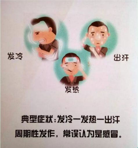 典型的瘧疾發(fā)作過程分為發(fā)冷期或寒戰(zhàn)期,發(fā)熱期,出汗期和間歇期。發(fā)作前幾天,每天或隔天可有程度不同的發(fā)燒,同時(shí)伴有疲勞、頭痛、腰背痛、肌肉酸痛、厭食、全身或腹部不適、輕度腹瀉和怕冷等前驅(qū)癥狀。