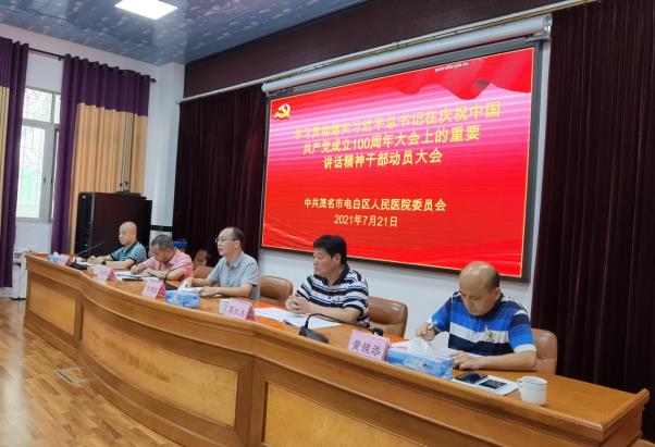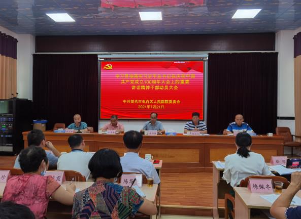 為深入學(xué)習(xí)貫徹習(xí)近平總書記在慶祝中國共產(chǎn)黨成立100周年大會上的重要講話精神,7月21日下午2時30分,我院在小會議室召開了學(xué)習(xí)貫徹落實(shí)習(xí)近平總書記在慶祝中國共產(chǎn)黨成立100周年大會上的重要講話精神干部動員大會,會議由醫(yī)院黨委副書記、院長冼明健主持,黨政領(lǐng)導(dǎo)班子、中層干部、各黨支部書記共75人參加了會議。