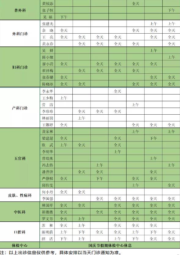出診科室詳見圖片,具體出診信息以當日公布為準,咨詢電話:0668-5113038。