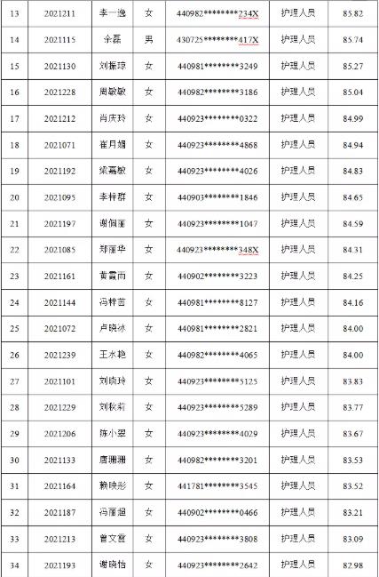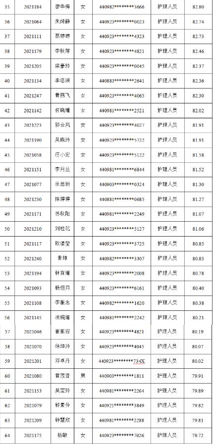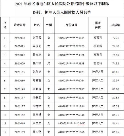 2021年茂名市電白區(qū)人民醫(yī)院公開招聘中級及以下職稱醫(yī)技、護(hù)理人員入圍體檢人員名單