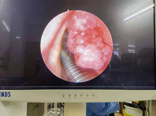 王先生經(jīng)過(guò)好友介紹,來(lái)到了我院耳鼻咽喉科。經(jīng)電子喉鏡檢查發(fā)現(xiàn)——右側(cè)聲帶新生物,考慮惡性的可能性大。為了進(jìn)一步明確診斷,醫(yī)生又為他進(jìn)行了活檢病理,結(jié)果提示為右喉部疣狀癌/疣狀型高分化鱗狀細(xì)胞癌。對(duì)于喉癌傳統(tǒng)的做法是行垂直半喉切除術(shù),但該術(shù)式必須氣管切開(kāi),不僅損傷大、恢復(fù)慢,且術(shù)后有咽瘺的風(fēng)險(xiǎn),病人要承受經(jīng)濟(jì)上和身體上的雙重打擊。