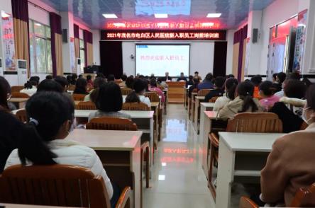 醫(yī)院黨委副書記、院長冼明健代表醫(yī)院熱烈歡迎新員工加入電白區(qū)人民醫(yī)院這個大家庭,并在入職心態(tài)、人際溝通、繼續(xù)學(xué)習(xí)等方面與新員工分享了幾點感想。一是盡快變換身份,多用“我”字,展示對醫(yī)院的認同、忠誠和擔(dān)當(dāng);二是加強人際溝通,多與同事、患者交流,拉近距離,消除隔閡;三是遇事不要抱怨,因為抱怨不能解決問題;四是勤于統(tǒng)計。每次統(tǒng)計不但是工作需要,也是自身積累,更是一個思考和改進的過程。五是筆耕不輟,堅持寫作。撰寫論文、開展科研攻關(guān)都離不開平時記錄;六是勇于求變,醫(yī)學(xué)的發(fā)展都需要我們不斷探索,而求新、求變、求突破則是其重要推動力。希望新入員工崗前培訓(xùn)后盡快融入醫(yī)院,適應(yīng)工作崗位,在醫(yī)院搭建的人才發(fā)展大舞臺上施展自己的醫(yī)學(xué)才華,早日成為醫(yī)院的棟梁之才。并要求他們在今后的工作中,以醫(yī)院發(fā)展為己任,不計較個人得失,積極為醫(yī)院建設(shè)和發(fā)展貢獻力量,服務(wù)電白群眾。
